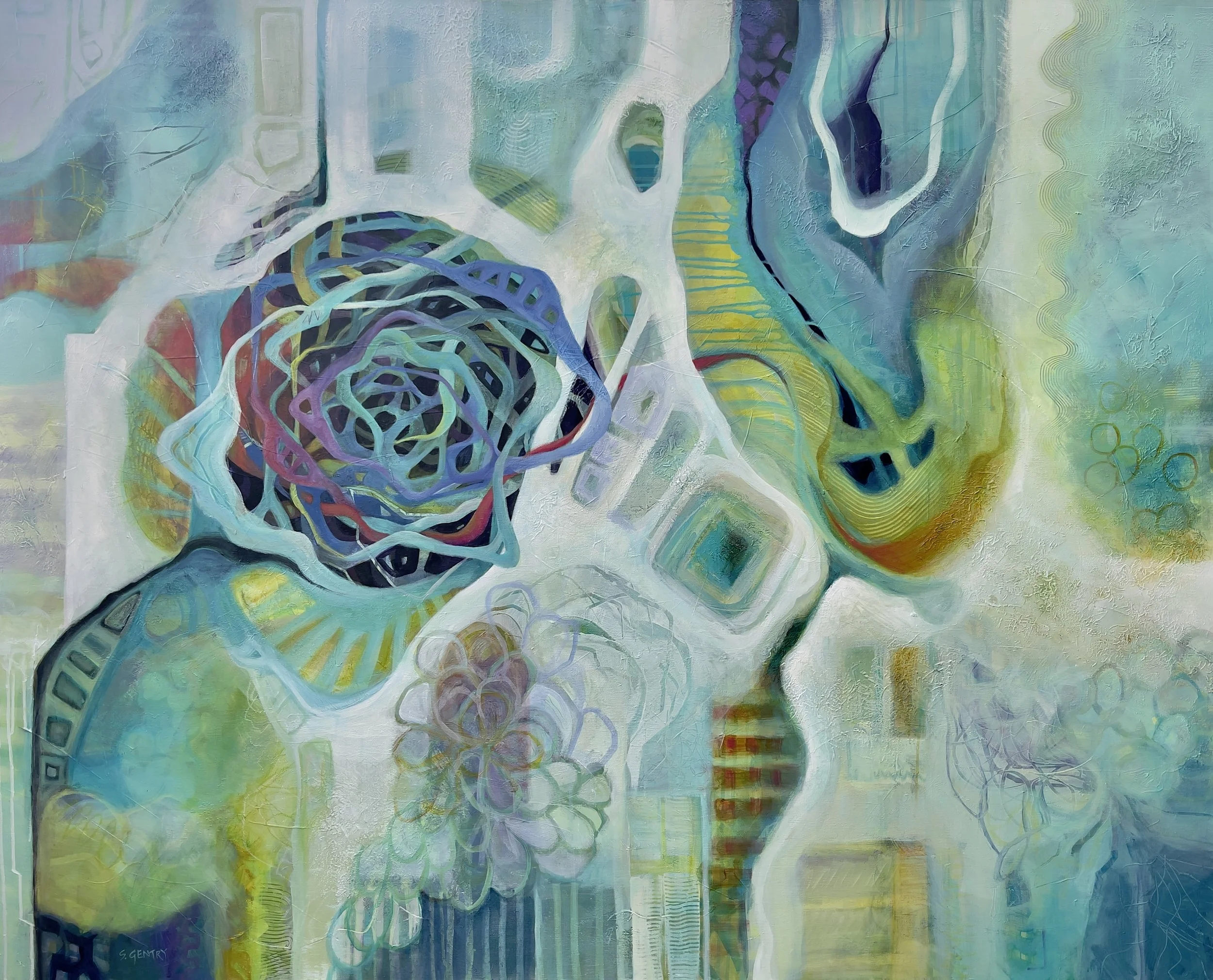 A series of acrylic paintings that explore my fascination with the patterns and “color play” created by translucent glass